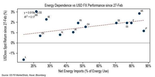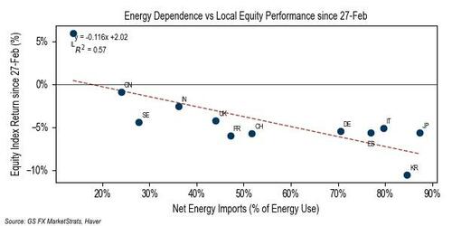 However, on the equity front we see a clear relationship, with stock markets of more energy-dependent economies, suffering more since Feb 27th.