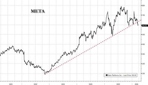 Technicals: META has broken below the recent trend line and is approaching oversold territory (14-day RSI = 32)