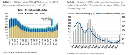 To put GSE buying into context, they once owned 25% of the outstanding agency mortgage market, but their share has shrunk to less than 1% in the past few years. While we await more information on this program (e.g., are the purchases outright like Fed QE programs or duration hedged as the GSE's portfolio has historically been run; how will they be they funded?), we think that the market has efficiently priced in the response to the program as announced.