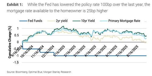 Last September, we discussed the US housing market's affordability problem, which can't be solved simply by the Fed cutting rates. Since then, the Fed has cut 75bp, but that move has only translated into a 20bp decline in mortgage rates.