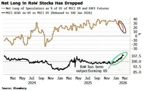 Overall, there is not yet enough to suggest an outright repudiation of the rest-of-the-world versus US trade, but if the trickle of positioning away from global stocks becomes a flood, then it would become a self-fulfilling prophecy.