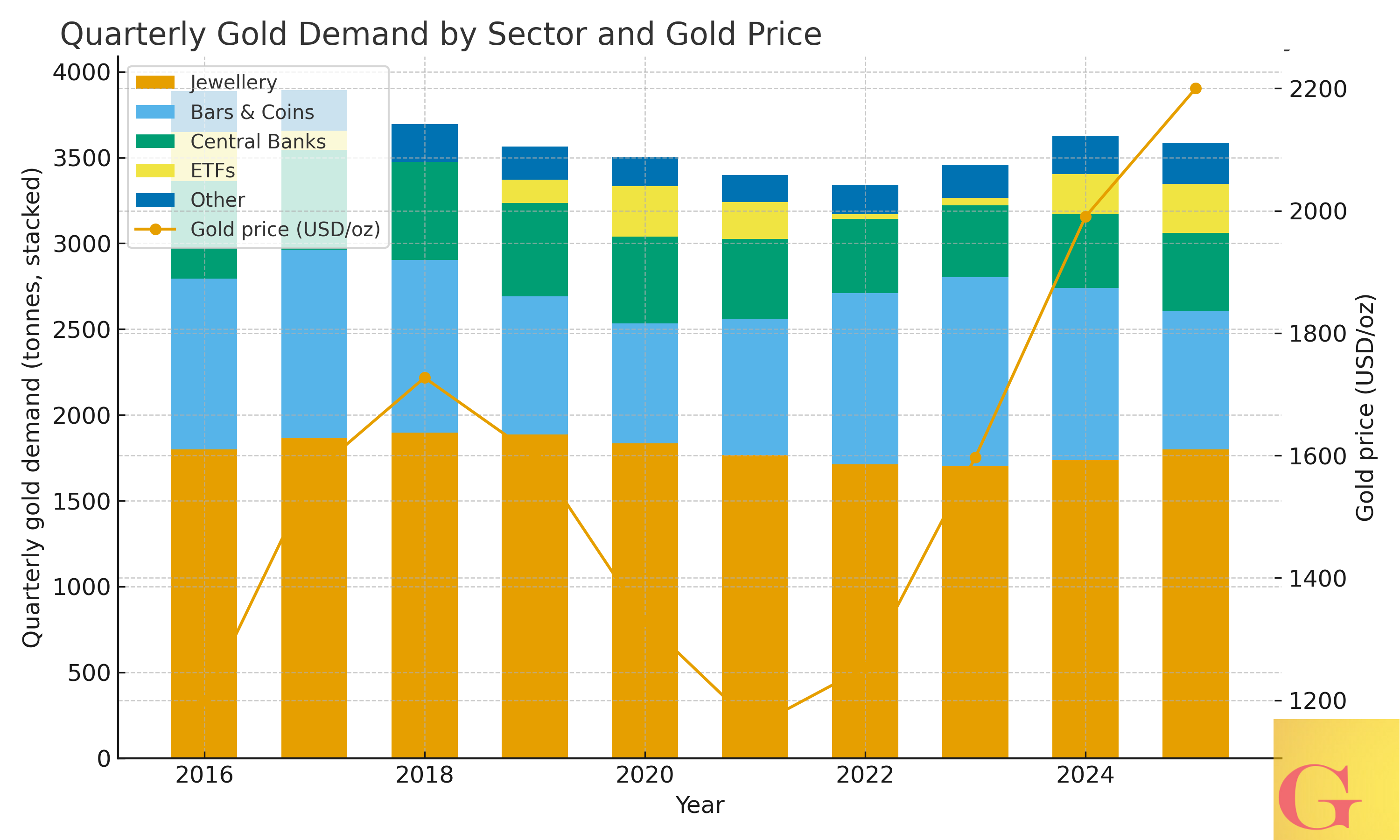 The relationship between gold demand and the price of gold is often treated as stable and intuitive, with jewellery consumption acting as the dominant and persistent anchor of physical demand. Since 2010, jewellery has consistently accounted for more than three hundred tonnes per quarter, followed by bars and coins. But…