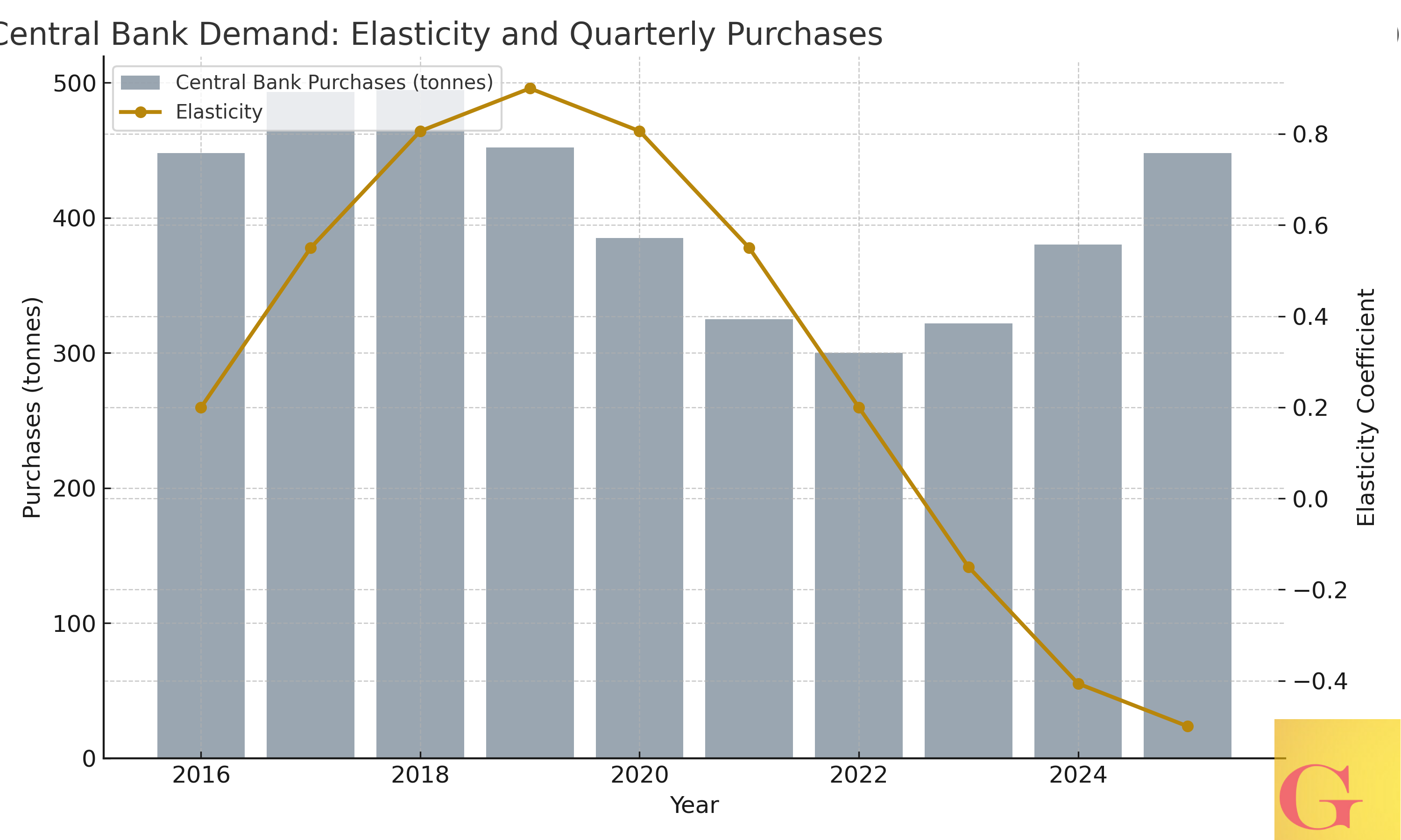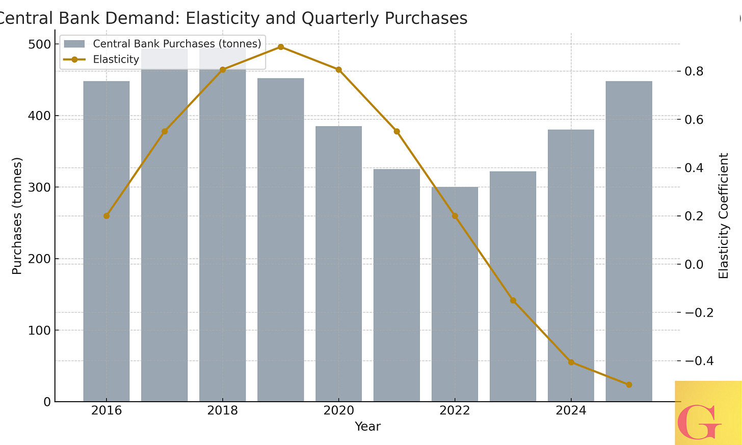 SocGen emphasizes that traditional demand modelling techniques offer limited explanatory power for central bank flows. Decisions are motivated by reserve diversification, geopolitical hedging, liquidity preference, and long-term macro considerations. These factors dominate price sensitivity and reduce the usefulness of elasticity as a predictive tool.