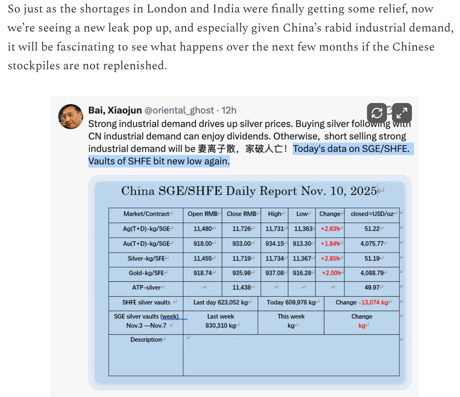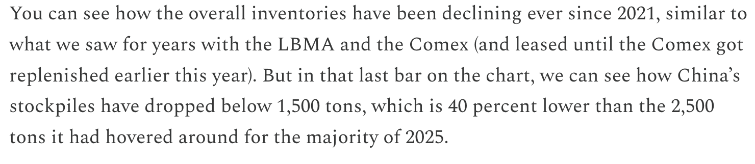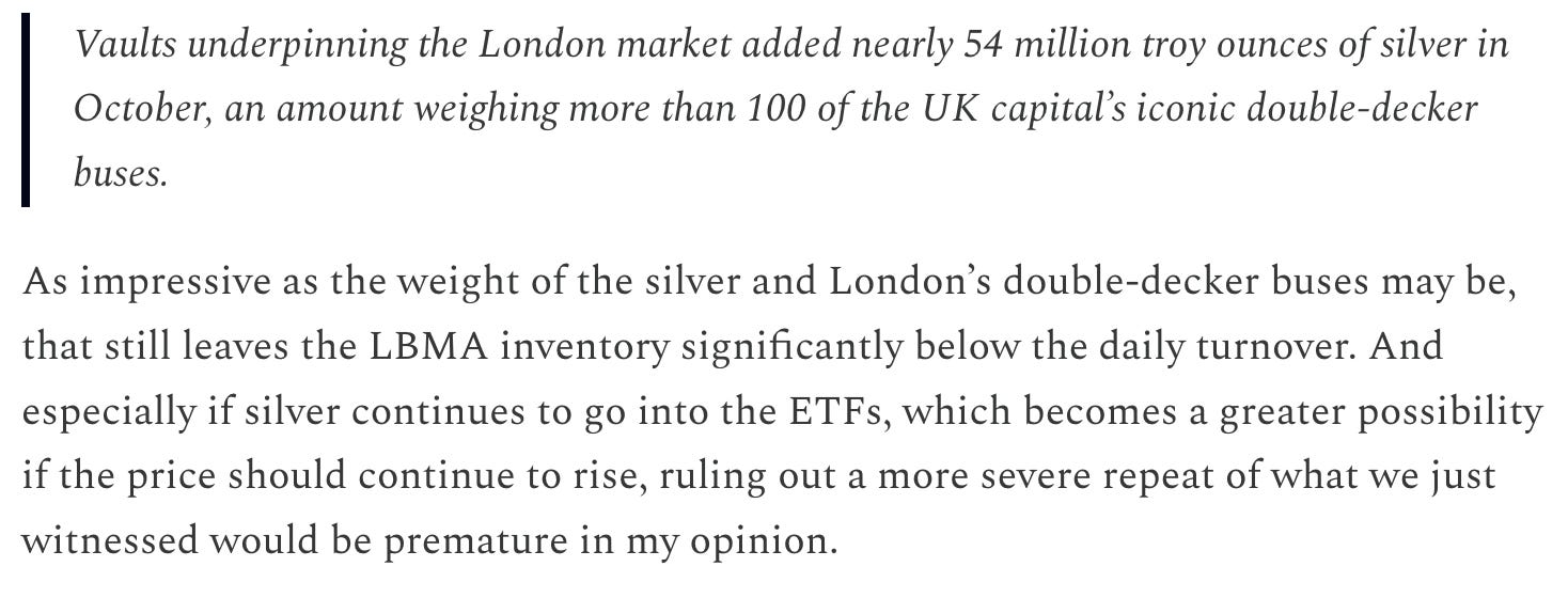 In terms of the Bloomberg article, here was a note about what they’re currently seeing regarding the silver supply.