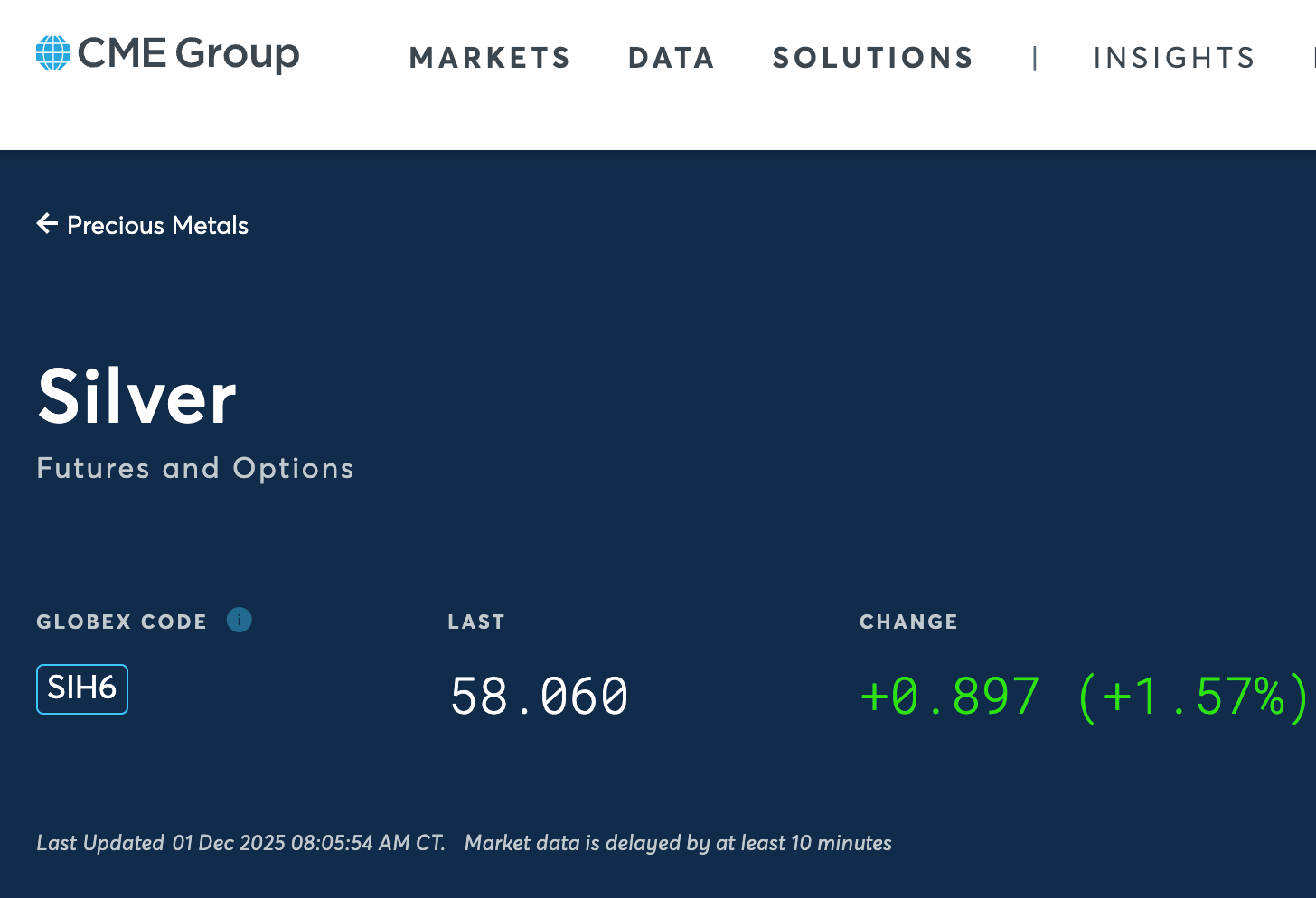 In case you thought Friday’s $3.50 silver rally to send the price to a new all-time record high above the $57 level was exciting, hopefully that means your week is off to a good start, as the silver futures have rallied again, and just crossed the $58 level this morning.