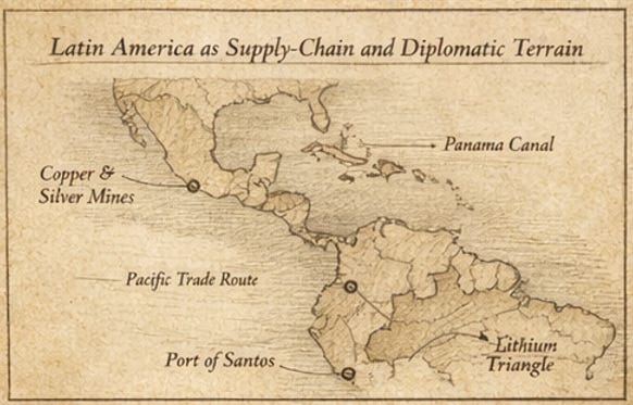Recent reporting by The Wall Street Journal has highlighted China’s efforts to preserve and deepen its access to Latin American supply chains as U.S. policy shifts toward tighter economic and security alignment in the Western Hemisphere. The Journal frames Latin America as a core market for Beijing, but as a region whose alignment affects access to raw materials, ports, infrastructure, and trade routes at a time when globalization is fragmenting under security pressures.¹