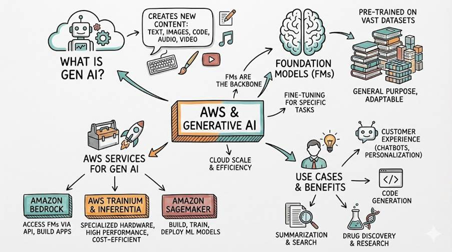 Generative AI is deep learning with a creative streak: give it a prompt, and it writes essays, paints pictures, composes music, or pretends it always knew the answer. It works by compressing vast amounts of past data into a statistical memory, then remixing it into something new — familiar enough to feel smart, different enough to feel original.