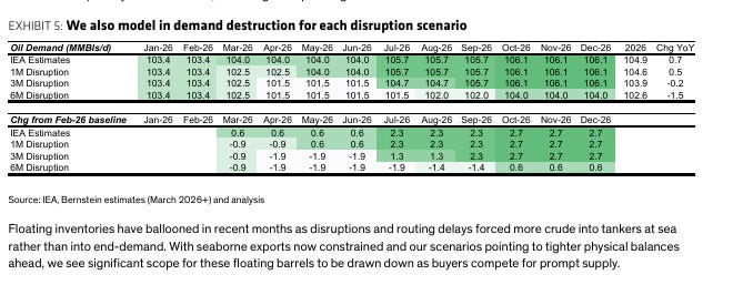 Bernstein addresses floating storage and SPR releases, totaling roughly 550 million barrels of potential buffer.
