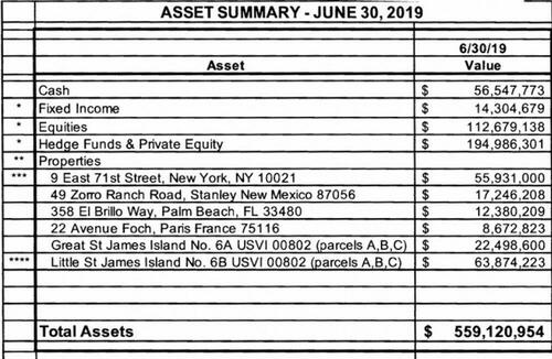 Of note, 680 pages of yesterday's release were entirely redacted. Oh, and here's Epstein's estimated net worth as of June 30, 2019.