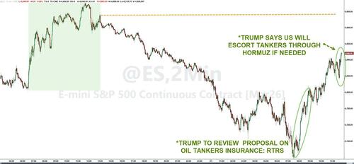 Update (1440ET): Moments ago President Trump announced that the United States will provide insurance for "ALL Maritime Trade" via the US Development Finance Corporation (DFC), and will provide Navy escorts, "if necessary."