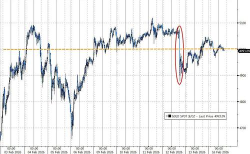 However, the last couple of weeks have seen the precious metal get caught up in the equities rout (tumbling below $5,000 on Thursday).