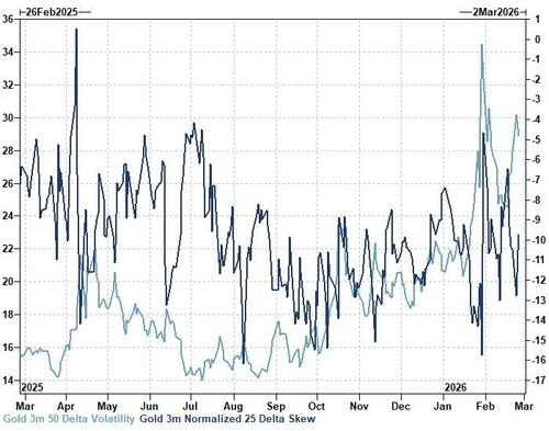 However, Gold futures OI dropped -$4.5bn; implied volatility declined; and skew bounced.
