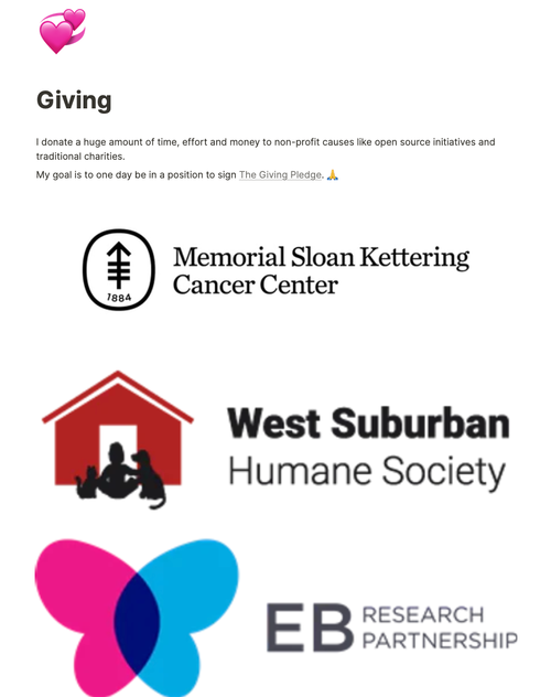 According to his website, Radvinsky donated to several charities, including Memorial Sloan Kettering Cancer Center, West Suburban Humane Society, and EB Research Partnership.
