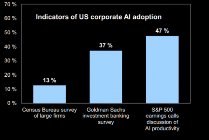 "The AI trade continues to broaden. Three years post-ChatGPT, AI is finally showing up in earnings — companies across the old economy are rolling out real AI tools tied to cost reduction and margin lift. That’s the idea behind the new GS basket, GSXUPROD Index: a clean way to own the “using AI, not selling AI” theme as AI shifts from narrative to measurable productivity." (Lee Coppersmith, GS trading)