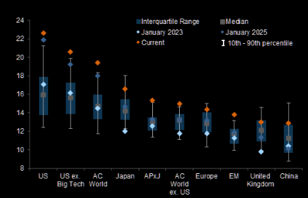 US equities are particularly expensive, even excluding large cap Tech stocks.