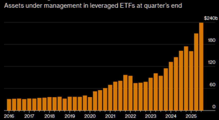 Investors have now plowed $239 Billion into Leveraged ETFs, the highest amount in history.