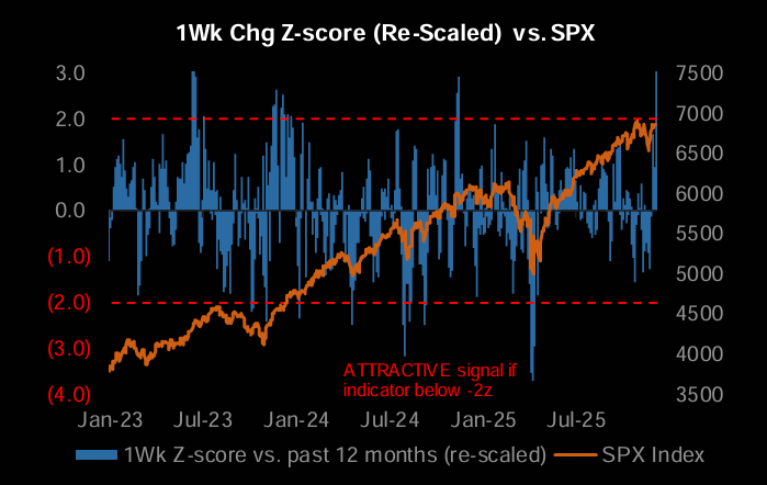 "...things have flipped as buying has picked up strongly across multiple cohorts such that the 1wk change metric for our US Tactical Positioning Monitor is at +3z." (JPM)