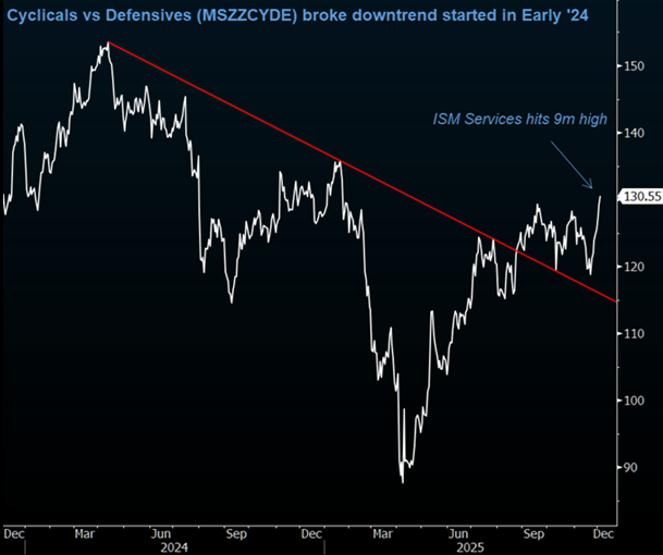 "Cyclicals vs Defensives are on their best run since 2016." (Morgan Stanley)