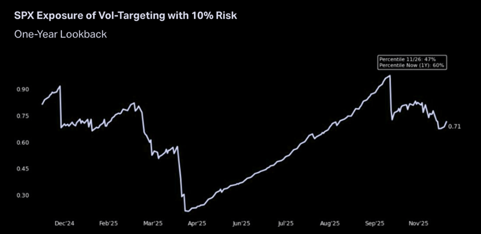 "The wave of systematic selling has faded, and vol-targeting strategies are starting to re-lever ... After two weeks of steady non-fundamental supply, CTA, Vol-Control, and Risk-Parity strategies have begun to re-add exposure as realized volatility declines." (Citadel)
