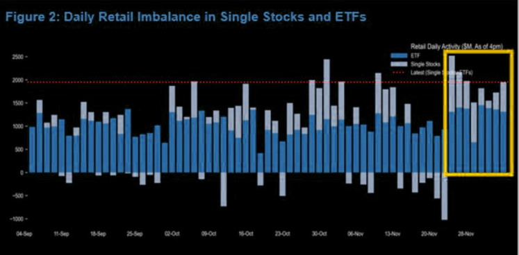 "Since November 25th, coming into Friday's session, we have seen 8 consecutive days of retail net buying close to or above $2bn per day [the most over that length since at least Sep." (JPM)