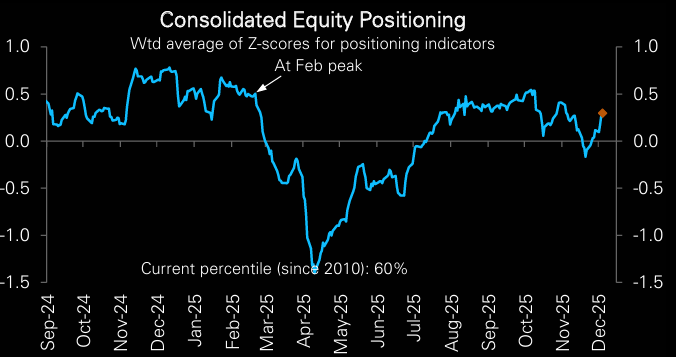 "Over the last two weeks, equity positioning has rebounded to turn modestly overweight again (0.30sd, 60th percentile), close to levels seen in late October." (Deutsche Bank)
