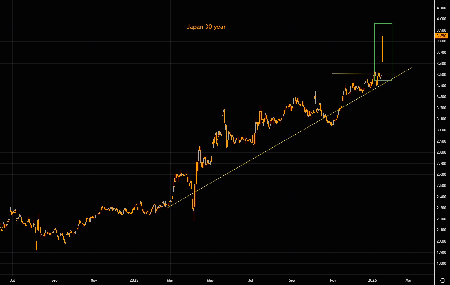 Japan 10 year trend line going beyond steep. This is truly extreme, and matters beyond Japan.