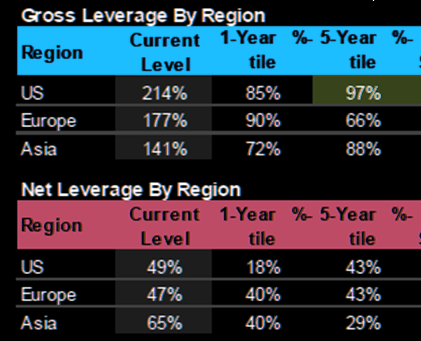 Morgan Stanley sees gross exposure among US hedge funds at 97th percentile on a 5-year look-back.