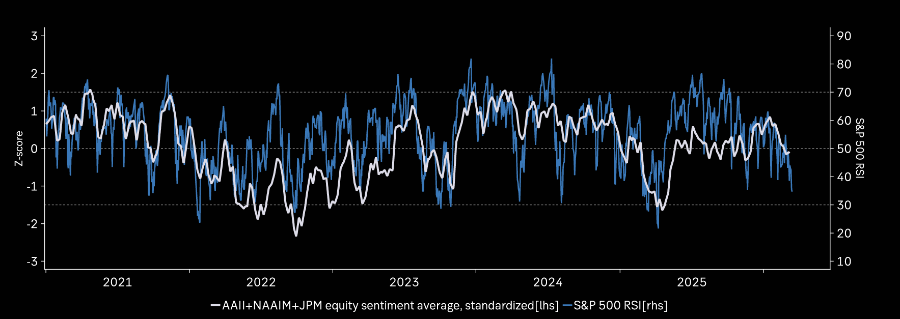 Aggregate investor sentiment is close to neutral, S&P 500 RSI just slightly below neutral.