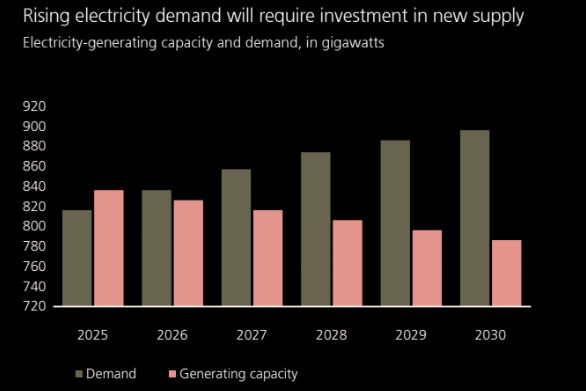 Electricity demand is expected to grow 2–3% annually, faster than GDP.