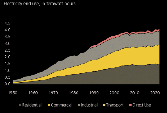 Electricity use stalled after 5% annual growth from 1950-2000.