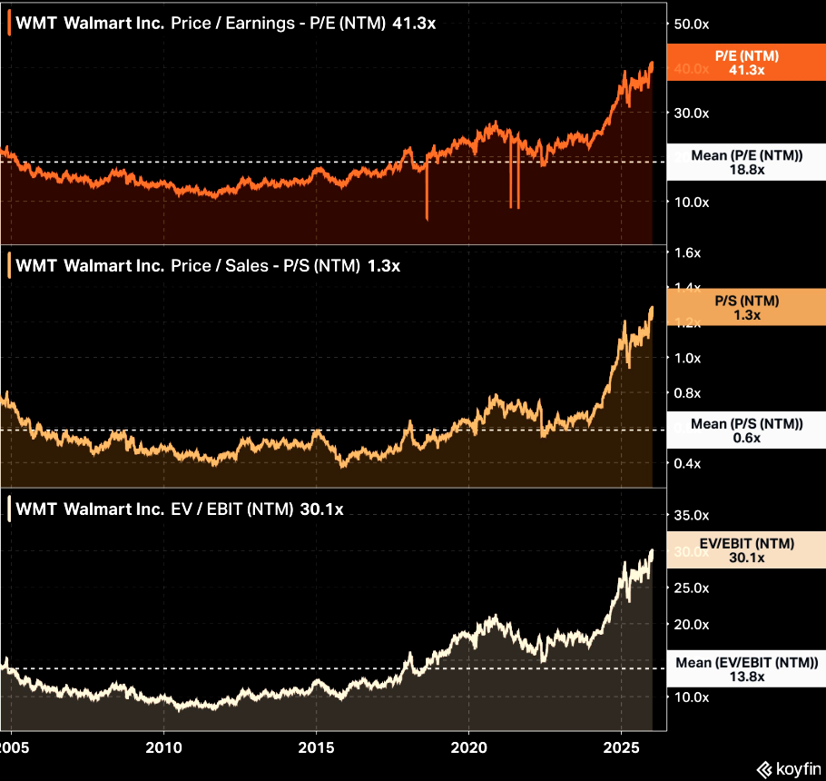 Walmart is trading at peak valuation multiples right now.