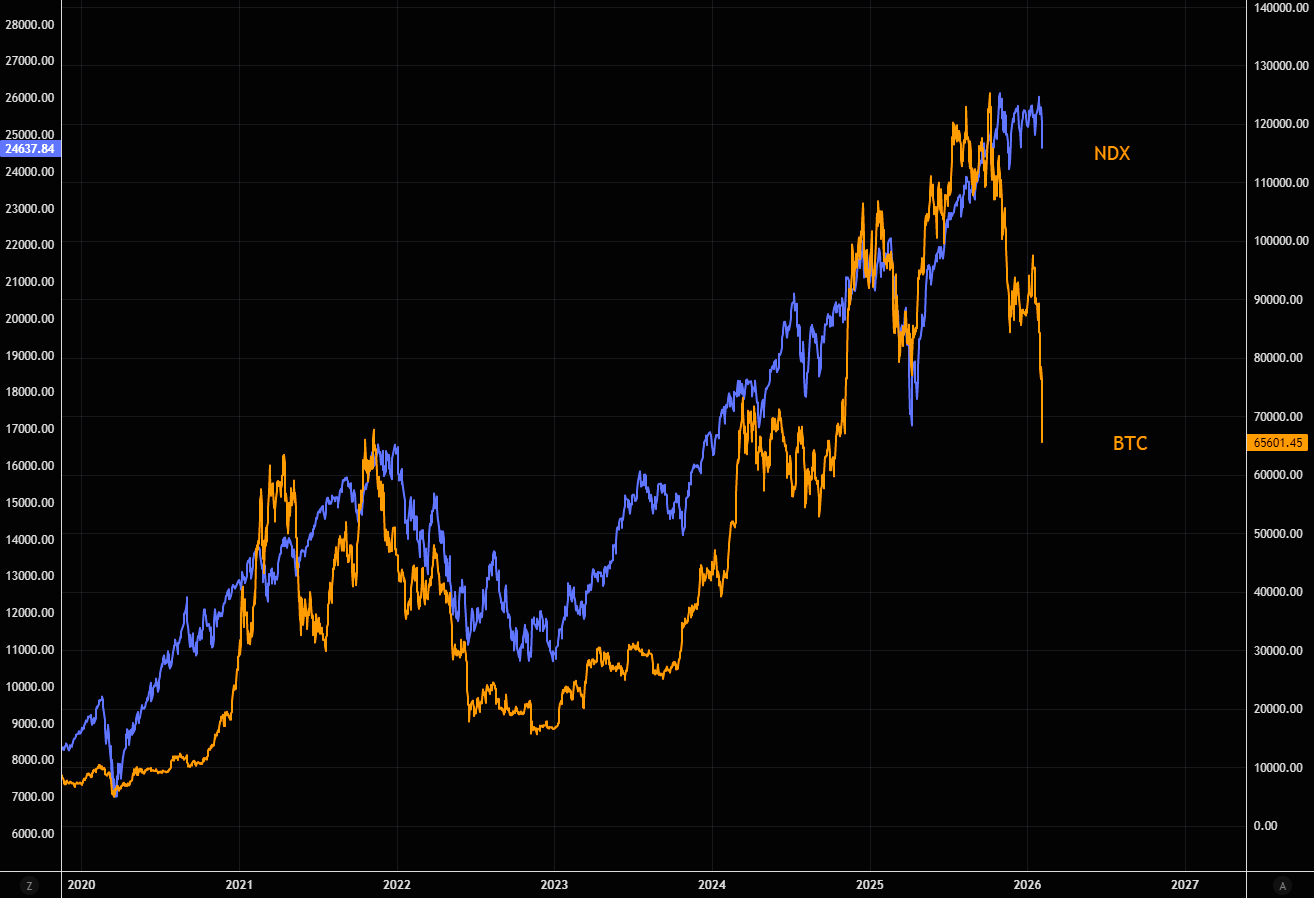 Like Benjamin Button, Bitcoin has been sold as anti-fiat money, gaining value as dollars age into dilution. Before 2025, that narrative held: BTC rose with falling USD and expanding global M2. Since 2025, the relationship has flipped. Bitcoin now trades less like anti-fiat money and more like a growth asset, moving with the NASDAQ-100 and reacting positively to dovish Fed pivots and negatively to hawkish ones, leaving the original thesis looking increasingly frayed. (Stifel's great macro team)
