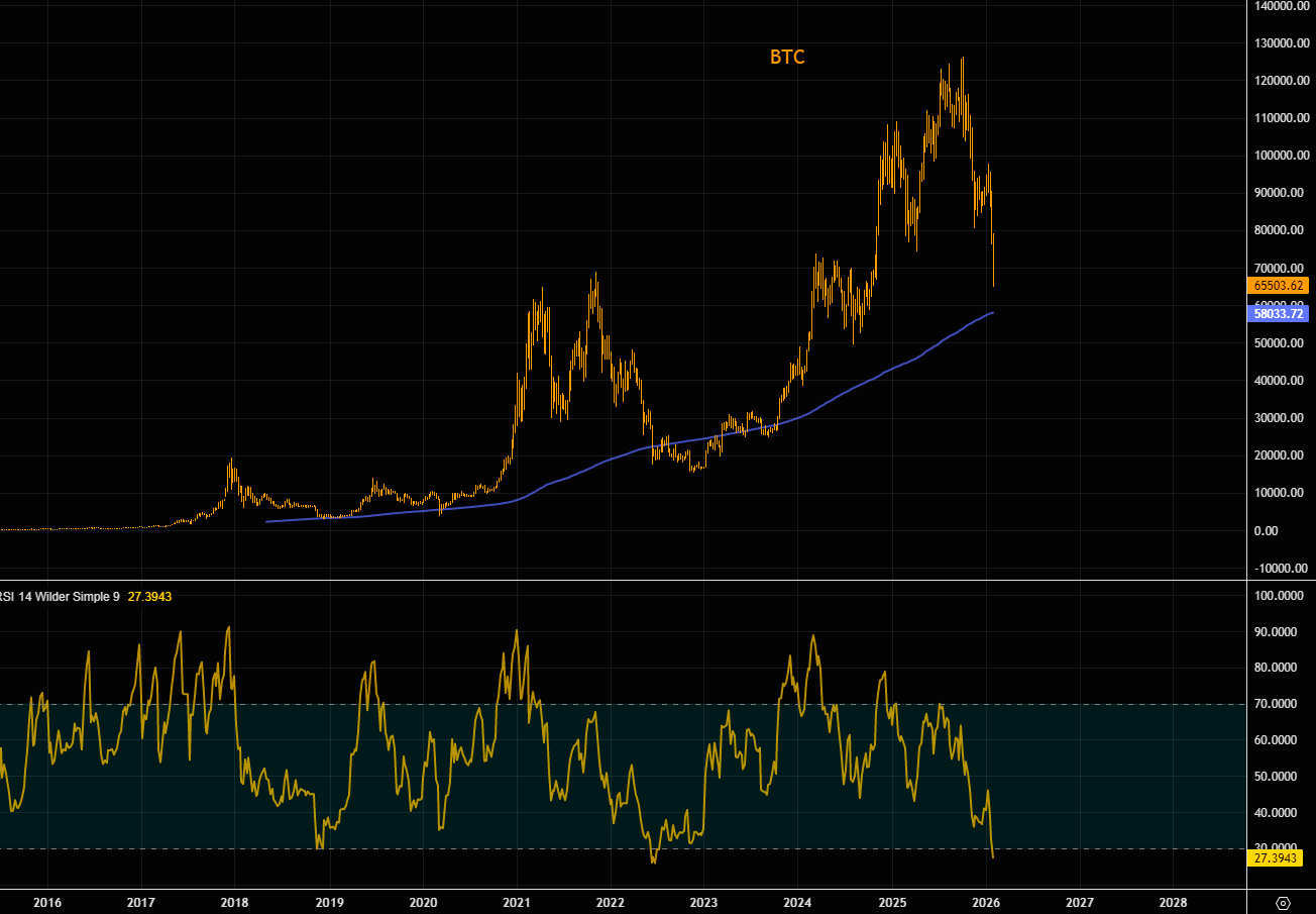 Bitcoin's 200 weekly MA approaching, currently just below the $60k level.