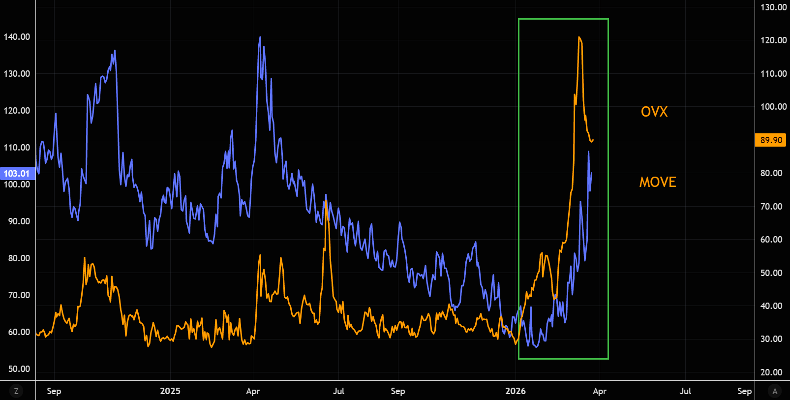 Oil vol and bond volatility have exploded higher, and remain "stubbornly" elevated.