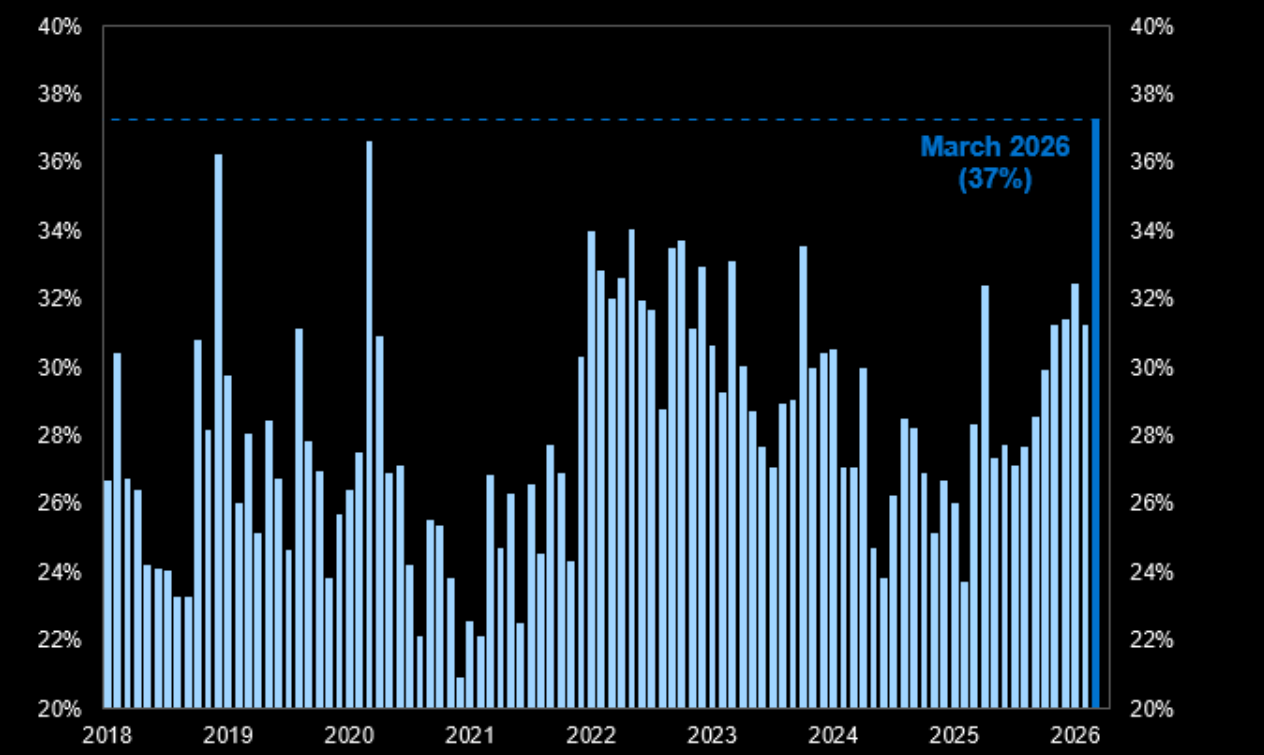 The chart shows the general explosion of ETF trading in March - a good proxy for macro hedging activity. More here.