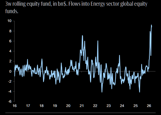 Massive inflows into energy equity funds.