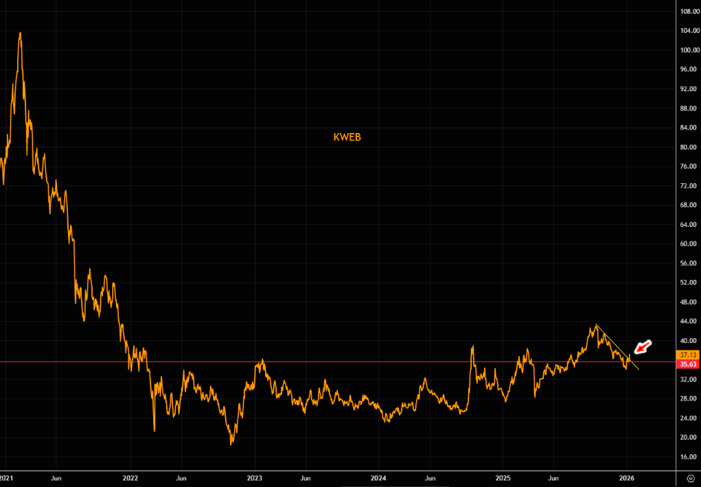 KWEB bounced on the break out level and is now taking out the negative trend line. This tech laggard has huge catch up potential. More on this set up here.