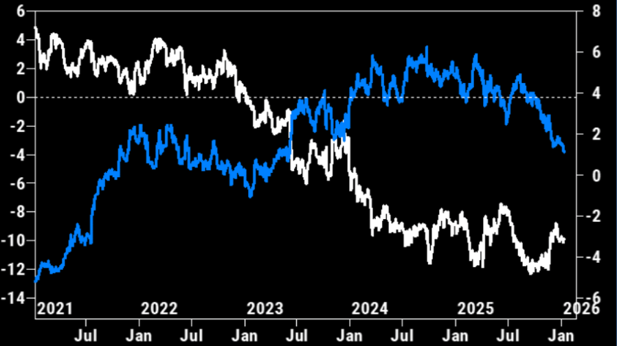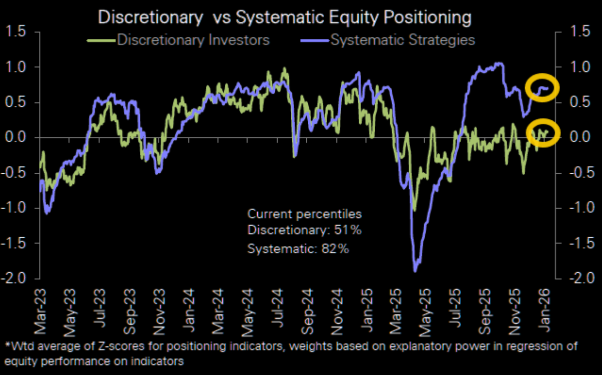 Deutsche Bank: "Notably, while investor sentiment has risen meaningfully over the last 6 weeks, positioning in our reading has not yet followed, with discretionary investors are still holding cautiously near neutral (0.09sd, 51st percentile). Systematic strategy positioning though is higher (0.71sd, 82nd percentile)." Latest note on positioning here.