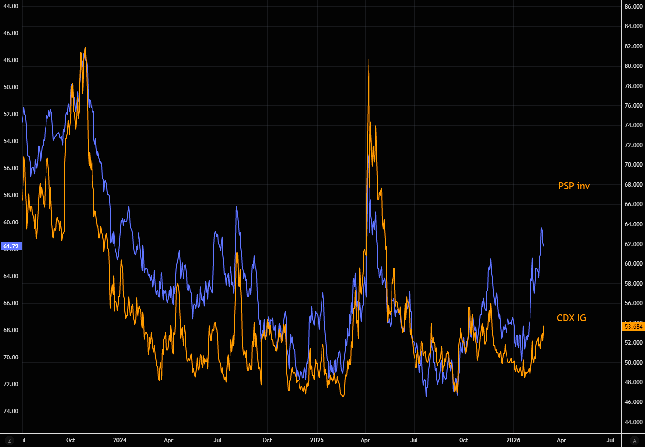 Credit protection is moving closely with the PSP (inverted). Looks like private equity "knows" something?