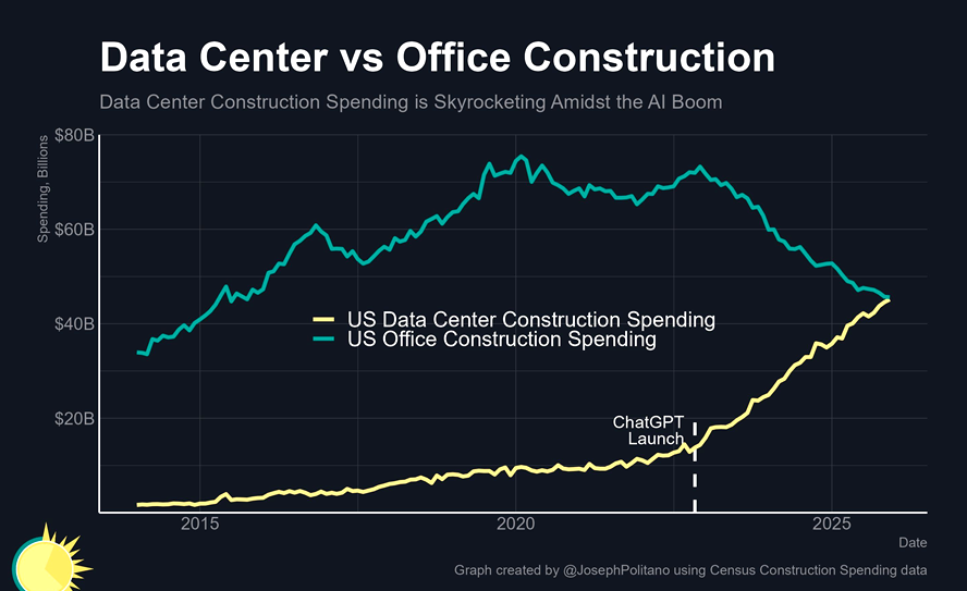 "The US now spends basically as much on data center construction as on office construction."