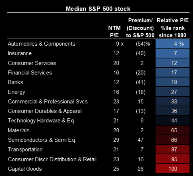 Historical valuation of cyclical industry groups.