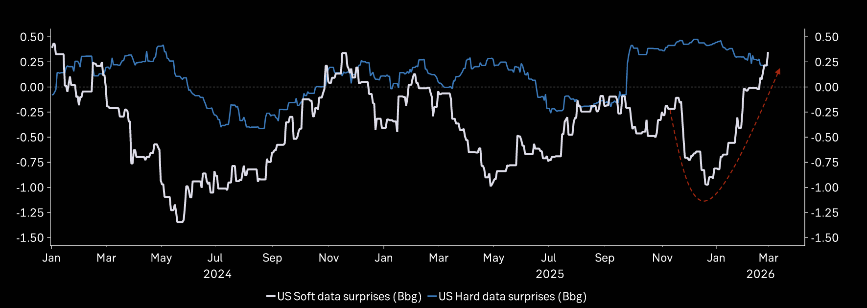US soft data surprises converge on hard data surprises in positive territory: positive signal.