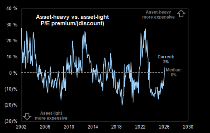 Asset-heavy stocks now trade at a P/E premium to asset-light stocks.