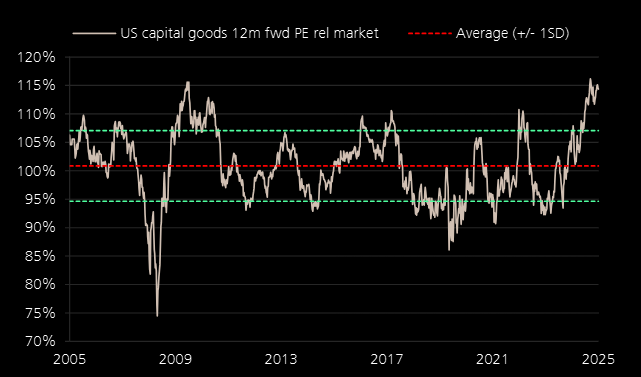 US Capital Goods are trading on a very high multiple against the market.