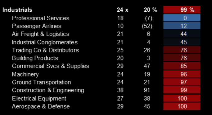 Some of the industrial subsectors are outright expensive.