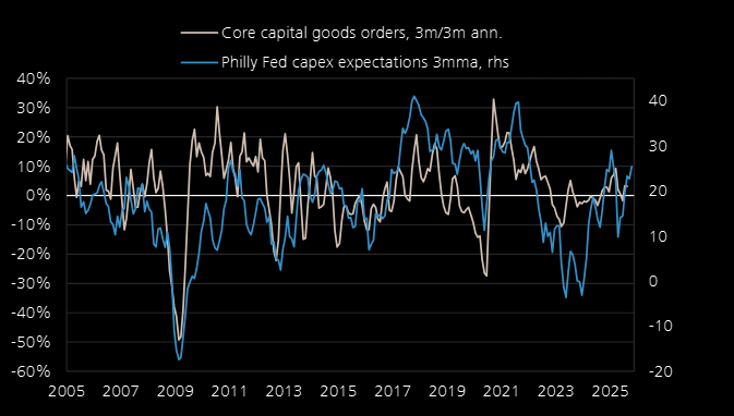 Philly Fed capital spending intentions would be consistent with a pick-up in capex.