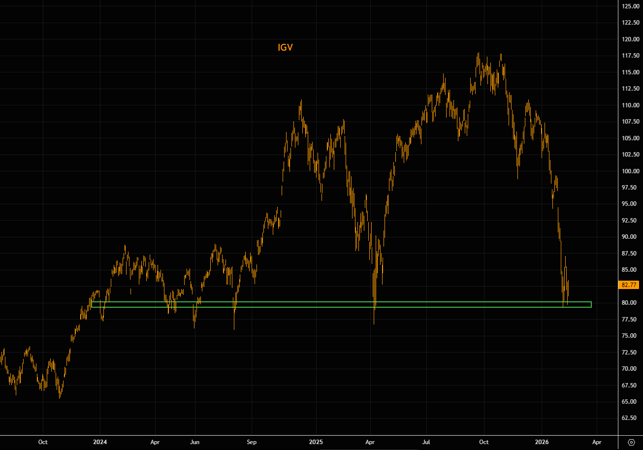 Chart shows the IGV trading in huge make or break levels. Think vibe coding is enough to crush that support level?