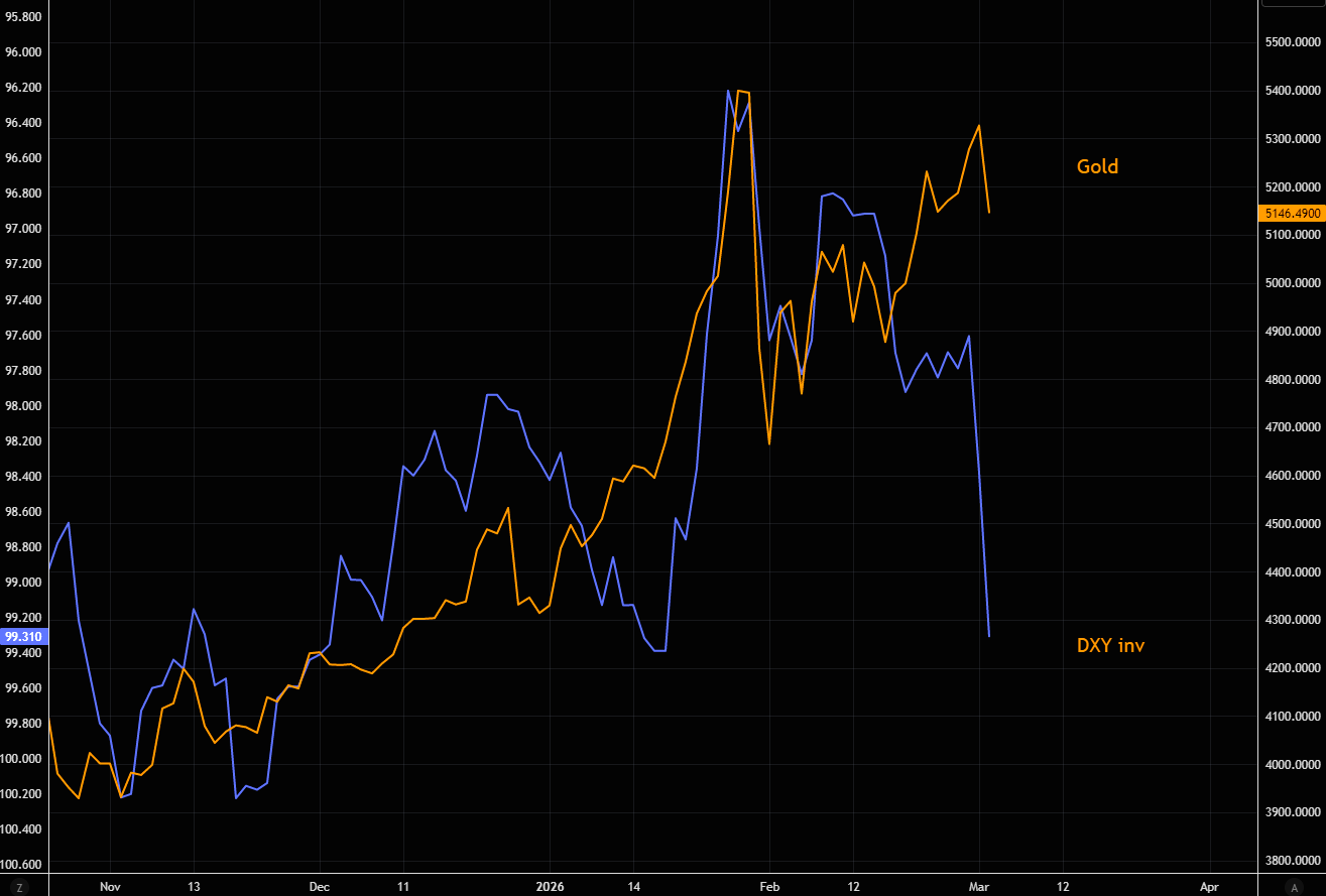 The last time the DXY traded at current levels, gold was around $4,700, and gold is still priced in dollars.