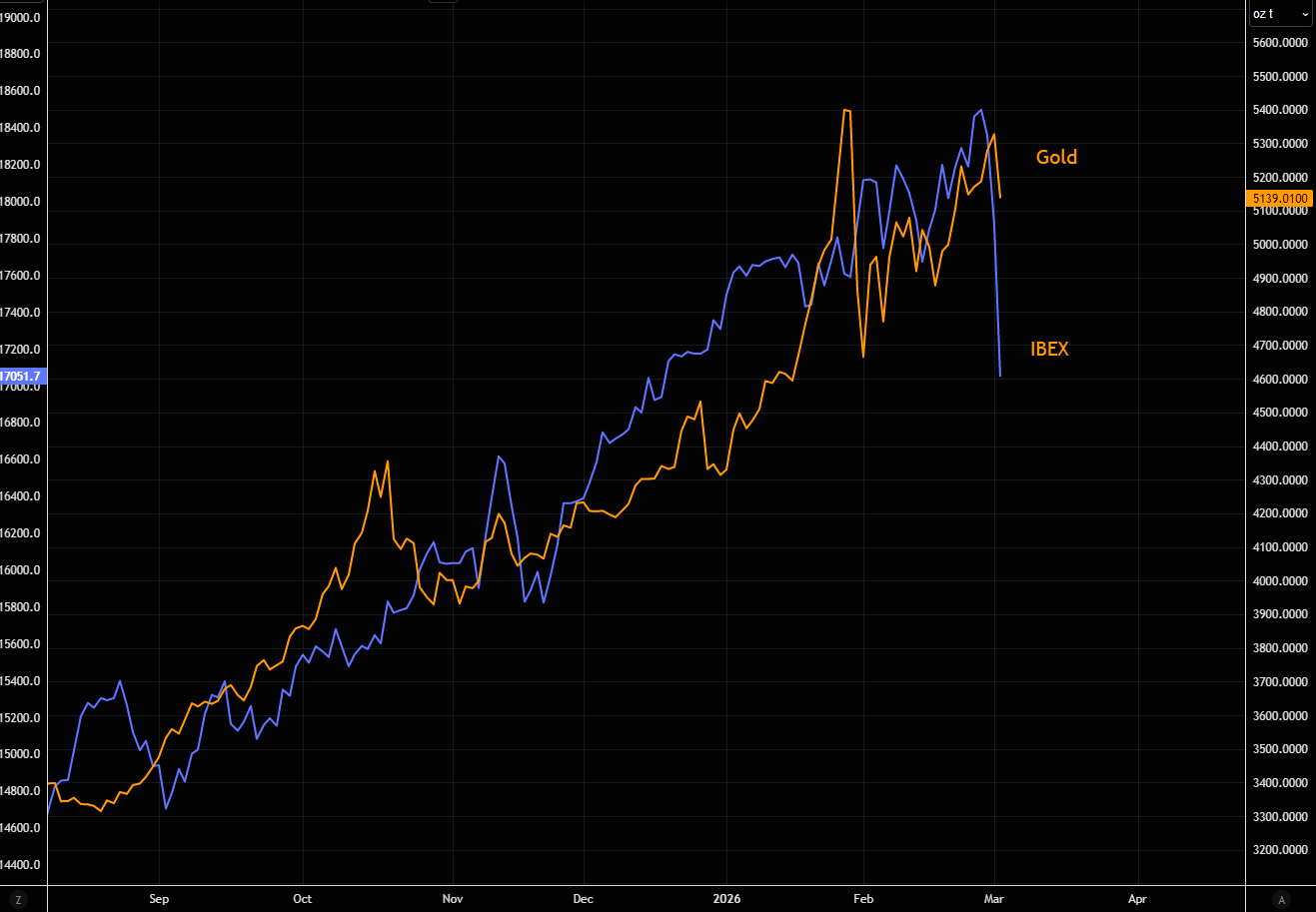 Chasing the IBEX has been one of those “far out on the risk curve” trades. There’s little fundamentally in common between Spain’s IBEX and gold, but the psychology behind piling into an asset simply because it’s going up is remarkably similar.