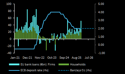 Since 2024 most Euro area member states have already started to experience a notable turnaround in bank lending growth. The increase has been the highest in Spain, Portugal and the Netherlands. Other member states, including Germany, France and Italy, have seen more modest gains but are also likely to turn the corner.